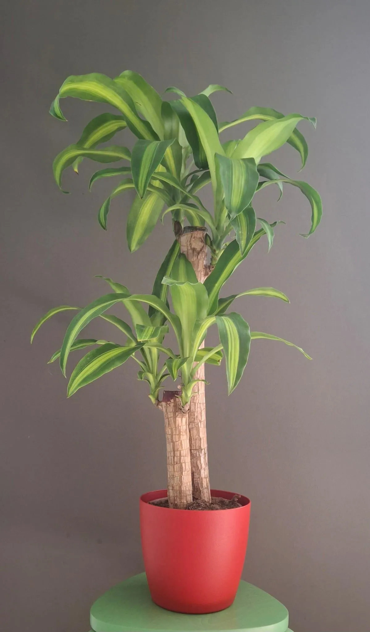 El Tronco de Brasil o Dracaena Fragans es una planta de interior, con un tronco central y grueso, de éste salen unas alargadas hojas de color verde claro con un toque más amarillo en la parte central de la hoja.